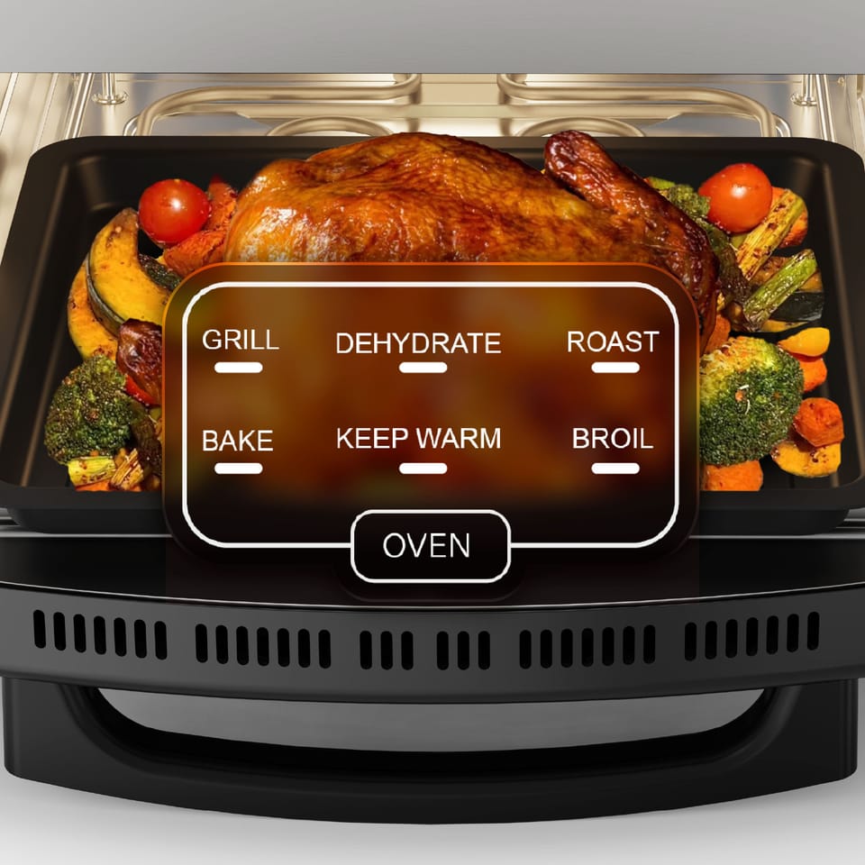 ----------GŁÓWNE CECHY----------6 programów pieczenia pizzy: thin crust (na cienkim cieście), neapolitan (neapolitańska), pan pizza (na grubym cieście), custom (własna), new york (nowojorska), frozen (mrożona)6 programów pracy piekarnika: grill (grillowanie), dehydrate (suszenie), roast (pieczenie), bake (wypieki), keep warm (podgrzewanie), broil (opiekanie)Dodatkowe funkcje: tryb pizza expert, wędzenieTimerAutomatyczne wyłączenieWyświetlacz LEDDotykowy panel sterowania Dwa elementy grzejneZabezpieczenie przed przegrzaniemWewnętrzne oświetlenieOkno w obudowie pozwalające obserwować proces gotowaniaNienagrzewający się uchwytNóżki antypoślizgowe----------DANE TECHNICZNE----------Powierzchnia pieczenia: kamień ceramicznyWymiary kamienia: 33 x 33 cmZakres temperatury: 60°C – 450°CMateriał: • Drzwi: stal nierdzewna, podwójne szkło, plastik • Obudowa: metalMoc maksymalna: 2200 WZasilanie: 220 ~ 240 V; 50/60 HzW zestawie: kamień, ruszt do kamienia, łopatka do pizzy----------PARAMETRY FIZYCZNE----------Waga: 11,8 kgWymiary: 495 x 455 x 276 mm Długość przewodu: 80 cm
