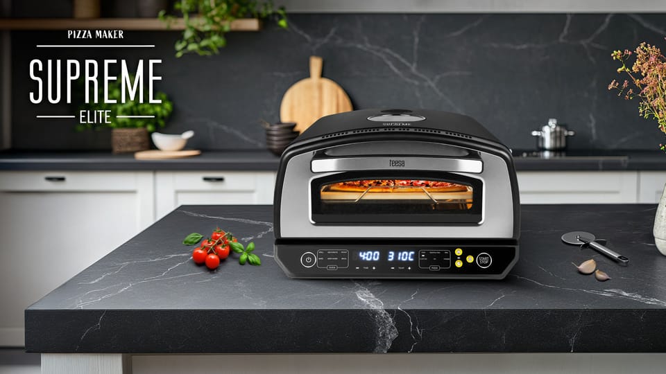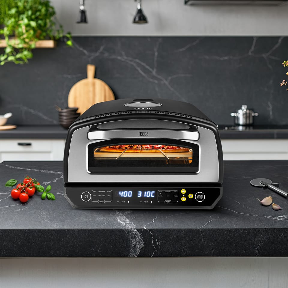 Piec do pizzy SUPREME ELITE 2200 W, 450 stopni, dwie grzałki, okno, LED, 33 cm, różne programy pieczenia