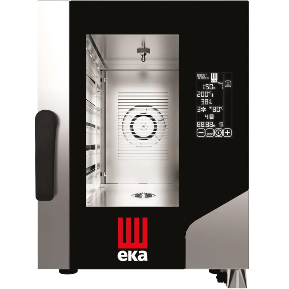 Kod producenta: MKF511BMPiec konwekcyjno-parowy Millenial Black Mask Gastro marki Tecnoeka to urządzenie nowoczesne, wydajne i niezawodne, idealne do praktycznie wszystkich zastosowań w ramach gotowania i pieczenia. Seria pieców MILLENNIAL BLACK MASK COMPACT to tylko 500 mm szerokości, które sprawia, że piec zmieści się w każdej, nawet najmniejszej kuchni. Elektroniczny 7-calowy, dotykowy panel sterowania umożliwia wygodne i precyzyjne ustawienie żądanych parametrów gotowania Piece MILLENNIAL BLACK MASK posiadają dwa opatentowane rozwiązania: Airflowlogictrade; - to opatentowane i innowacyjne rozwiązanie polegające na całkowitym przeprojektowaniu deflektora (osłony wentylatora). Efektem tego zabiegu jest poprawa cyrkulacji przepływu powietrzaHumilogictrade; - nowy opatentowany system nawilżania polegający na podawaniu wody bezpośrednio z wentylatora. Zapewnia on wysoki poziom wilgoci i znacznie mniejsze zużycie wody. Wbudowany port USB to rozwiązanie zalecane dla kuchni sieciowych. Wystarczy zaprogramować tylko jeden piec. Do pozostałych można wgrać program za pośrednictwem portu USB.Do najważniejszych funkcji urządzenia należą: