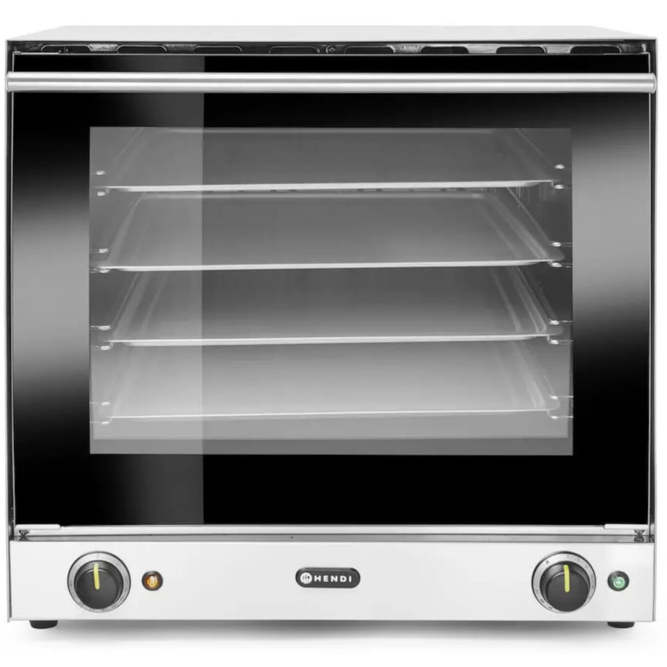 Numer producenta: 227060Piec konwekcyjny H90 marki Hendi to niezwykle praktyczne urządzenie niezbędne dla wszelkich punktów gastronomicznych serwujących ciepłe posiłki. Ten wielozadaniowy piec umożliwia przygotowanie pysznych wypieków, tart, zapiekanek czy pieczywa. Niewielki piekarnik konwekcyjny o mocy 2670 W zajmuje niewiele miejsca, dając dużo możliwości. Wykonany został ze stali nierdzewnej, odpornej nawet na intensywne użytkowanie, jest trwały i wytrzymały oraz łatwy w czyszczeniu. Posiada 2 wbudowane wentylatory, które charakteryzują się wysoką wydajnością, wymuszają obieg powietrza, dzięki czemu pieczenie postępuje szybko i równomiernie. Podwójne przeszklone drzwi wykonane zostały z nienagrzewającego się szkła, które można łatwo zdjąć do czyszczenia, wentylowane są grawitacyjnie. Timer pozwala na ustawienie czasu pracy do 120 minut.Cechy produktu: