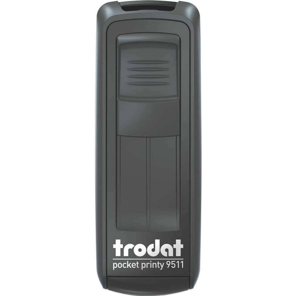 * pieczątka bez wkładki tuszującej * osobno zamów wkład do tej pieczątki * jednostka sprzedaży: 1 szt. * posiada wygodne zamknięcie, dzięki któremu pieczątka zmieści się w każdej kieszeni * płytka tekstowa ma wymiary 38x14 mm * Producent: Trodat * Nazwa: Trodat 9511 * Wielkość odbicia: 38 x 14 mm * Wymiary automatu: 28 x 22 x 77 (h) mm * Sugerowana maksymalna ilość linii tekstu: 4 * Kształt: prostokątny * Zatyczka: pieczątka zamykana * Kolor obudowy: czarny * Model wymiennej poduszki: 6/9511 * Pieczątka Trodat Pocket Printy 9511 to następca popularnej pieczątki kieszonkowej imiennej 9411. Najczęściej umieszcza się na niej dane imienne lub firmowe, maksymalnie do 4 linii tekstu zależnie od wielkości i kroju czcionki * Pieczątka ta staje się coraz bardziej popularna, dzięki małym rozmiarom, ergonomicznej obudowie oraz wyjątkowej wygodzie przechowywania i użytkowania. Jest ona także dobrym wyborem jako druga, czy kolejna pieczątka w firmie i traktowana może być jako podręczna i przenośna pieczątka firmowa. Służy równie dobrze lekarzom, jak i wszystkim użytkującym pieczątkę poza biurem, np. w terenie. * Seria Pocket Printy to całkowicie bezawaryjne pieczątki, wykonane z tworzyw o najwyższych parametrach jakościowych. Dostępne są aż w ośmiu kolorach.