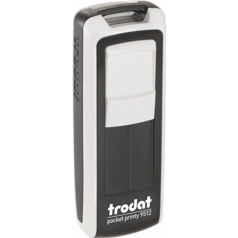 * pieczątka bez wkładki tuszującej * osobno zamów wkład do tej pieczątki * jednostka sprzedaży: 1 szt. * posiada wygodne zamknięcie, dzięki któremu pieczątka zmieści się w każdej kieszeni * płytka tekstowa ma wymiary 47x18 mm * Producent: Trodat * Nazwa: Trodat 9512 * Wielkość odbicia: 47 x 18 mm * Wymiary automatu: 32 x 24 x 86 (h) mm * Sugerowana maksymalna ilość linii tekstu: 5 * Kształt: prostokątny * Zatyczka: pieczątka zamykana * Kolor obudowy: biały * Model wymiennej poduszki: 6/9512 * Pieczątka Trodat Pocket Printy 9512 to następca popularnej pieczątki kieszonkowej imiennej 9412. Najczęściej umieszcza się na niej dane firmowe, maksymalnie do 5 linii tekstu zależnie od wielkości i kroju czcionki. Pieczątka ta staje się coraz bardziej popularna, dzięki małym rozmiarom, ergonomicznej obudowie oraz wyjątkowej wygodzie przechowywania i użytkowania. Jest ona dobrym wyborem jako druga, czy kolejna pieczątka w firmie i traktowana jest jako podręczna i przenośna pieczątka firmowa. Służy równie dobrze lekarzom, jak i wszystkim użytkującym pieczątkę poza biurem, np. w terenie. * Seria Pocket Printy to całkowicie bezawaryjne pieczątki, wykonane z tworzyw o najwyższych parametrach jakościowych. Dostępne są aż w ośmiu kolorach.