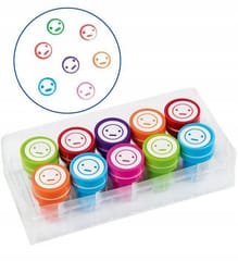 Pieczątki są nasączone kolorowym tuszem i gotowe do uzycia od razu po wyjeciu z opakowania. W zestawie znajduje sie 10 stempli w 6 róznych kolorach. Produkt bezpieczny i zgodny z wymaganiami Unii Europejskiej.