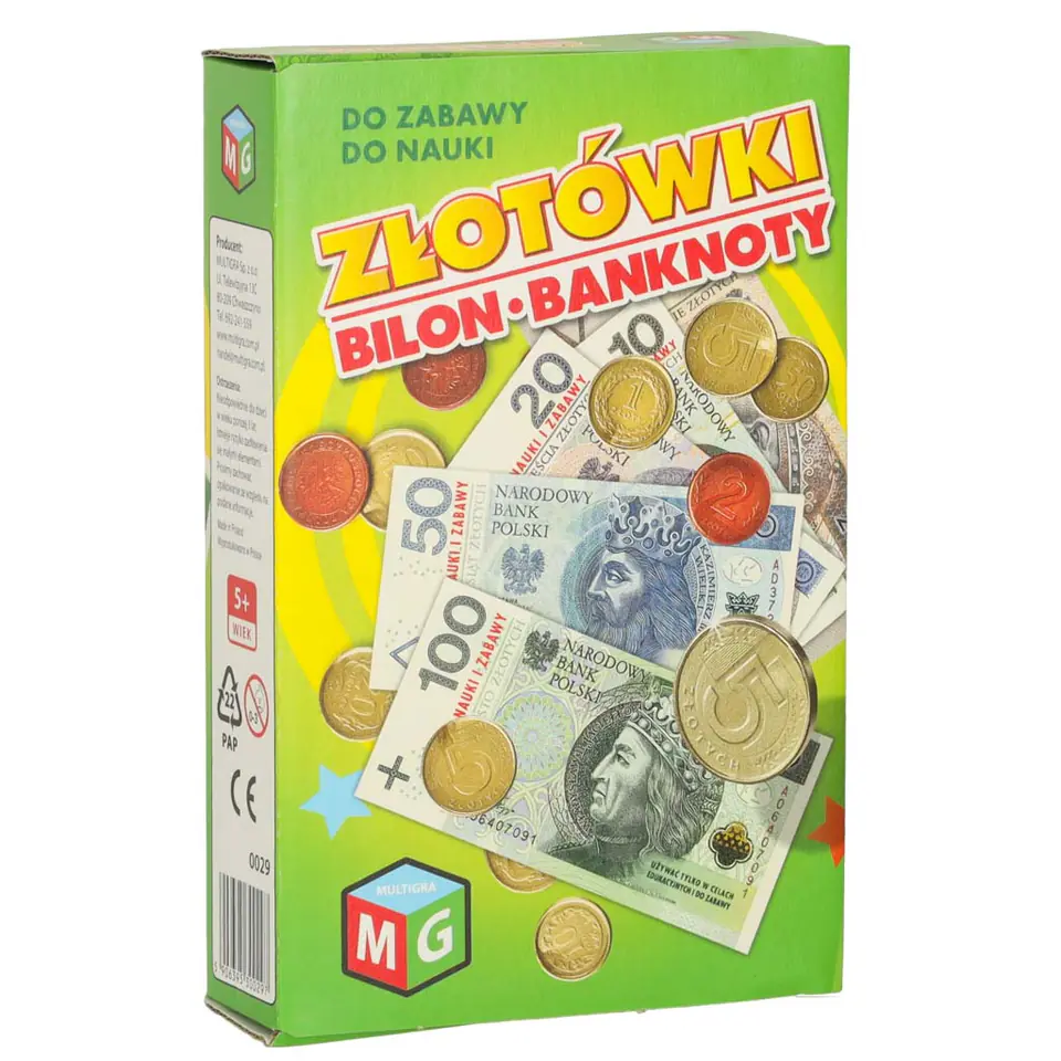 Imitacja polskich pieniędzy w bilonie i w banknotach. Produkt nadaje się doskonale do zabawy i może być wykorzystany jako atrakcyjny rekwizyt różnego rodzaju gier oraz pomoc dydaktyczna.