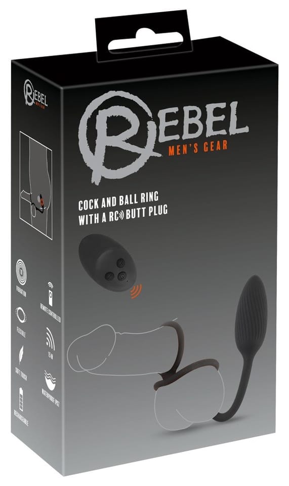 Wzmacnia z przodu, psuje z tyłu!Cock and Ball Ring with RC Butt Plug marki Rebel to połączony pierścień na penisa i jądra z mocno blokowaną wtyczką wibroanalną, która może być wygodnie sterowana za pomocą praktycznego pilota - o zasięgu do 15 metrów, nawet przez partnera.Rozciągliwe pierścienie mocno chwytają penisa i jądra, a dzięki efektowi zastoju krwi mogą skutecznie wspomagać erekcję. Jednocześnie włożony korek wibro-analny o spiralnej strukturze i 10 zróżnicowanych trybach wibracji zapewnia intensywną stymulację w tylnej części penisa. Elastyczny pręt łączący zagłębia się blisko krocza i zapewnia dodatkową stymulację.Sprytnie połączona silikonowa zabawka o jedwabistej, aksamitnej powierzchni może być również dyskretnie i trwale noszona pod ubraniem. Dla niepowtarzalnych uczuć - nie tylko podczas seksu - także w życiu codziennym! A nawet pod wodą, ponieważ jest wodoodporny na całym obwodzie.
