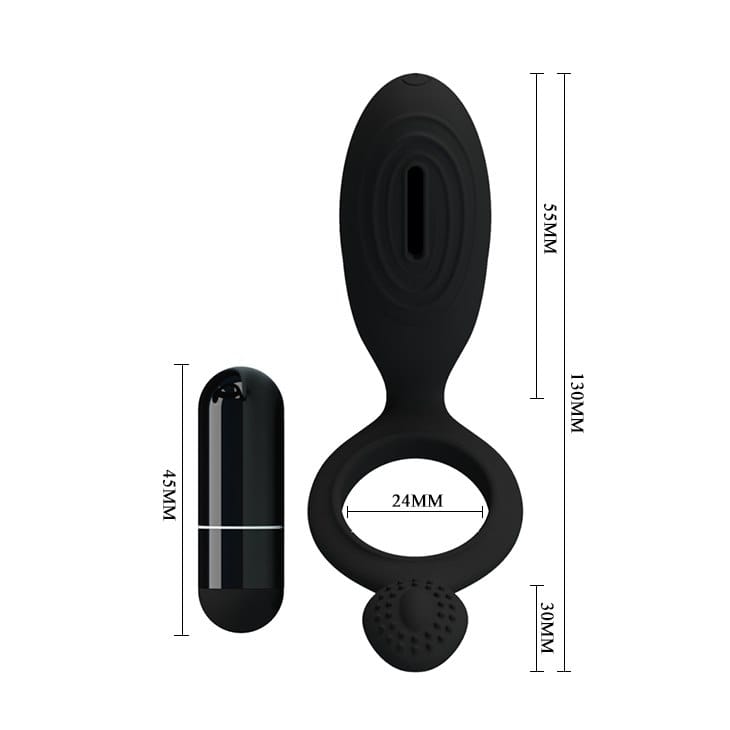 Pierścień spełnia jednocześnie 3 funkcje.Po pierwsze, pełni role ringu erekcyjnego, dzięki czemu Wasz stosunek będzie trwał dłużej, a penis stanie się sztywniejszy i grubszy.Po drugie, specjalnie zaprojektowana część stymulująca do której wkładane jest urządzenie wibrujące pieści łechtaczkę partnerki podczas stosunku.Po trzecie, wypustka wyposażona w jeżyki i zgrubienie pieści anusa Twojej partnerki.Dzięki temu, Wasze stosunki nabiorą zupełnie nowego wymiaru.Ring ten spotęguje i urozmaici doznania odczuwane przez obojga partnerów.Intensywne wibracje spowodują zwiększenie przyjemności płynącej z sexu.Wibracje uruchamiane są za pomocą guzika w urządzeniu wibrującym.Istnieje możliwość zdemontowania wibratora z pierścienia, który może wtedy posłużyć jako klasyczny wibrator.Ring posiada nowoczesny design, który idealnie dopasuje się do Twojego członka.Materiał z którego został wykonany jest bardzo rozciągliwy, produkt pasuje na każdego penisa.Pierścień dodatkowo skutecznie poprawi erekcję ponieważ pierścień uciska penisa blokując odpływ krwi, co sprawia, że penis długo pozostaje w stanie erekcji.W całości wykonany został z jedwabiście gładkiego silikonu klasy medycznej.Wodoodporny można używać w wodzie.