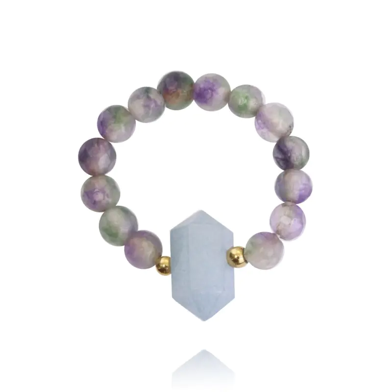 Pierścionek na gumce stal chirurgiczna pozłacana kryształ górski PST854N