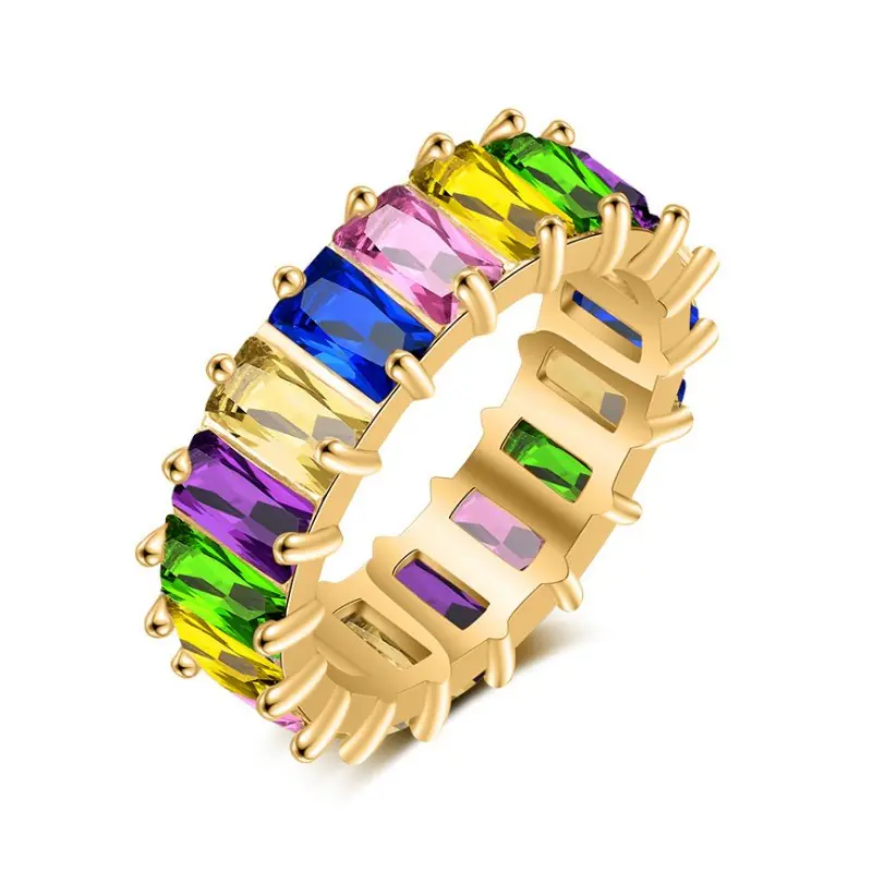 Pierścionek pozłacany cyrkonie kolor stal chirurgiczna platerowana złotem PST579KOL, Rozmiar pierścionków: US7 EU14