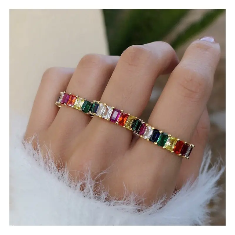 Pierścionek pozłacany cyrkonie kolor stal chirurgiczna platerowana złotem PST579KOL, Rozmiar pierścionków: US8 EU17