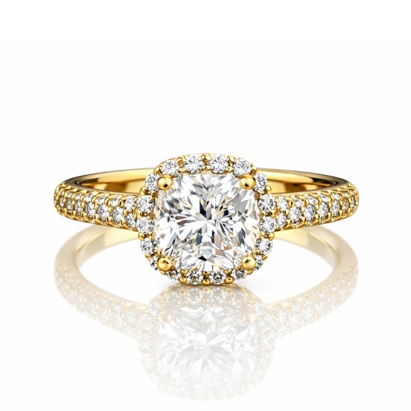 Pierścionek stal chirurgiczna platerowana 14k złotem, efektowny zaręczynowy z cyrkonią PST992, Rozmiar pierścionków: US7 EU14