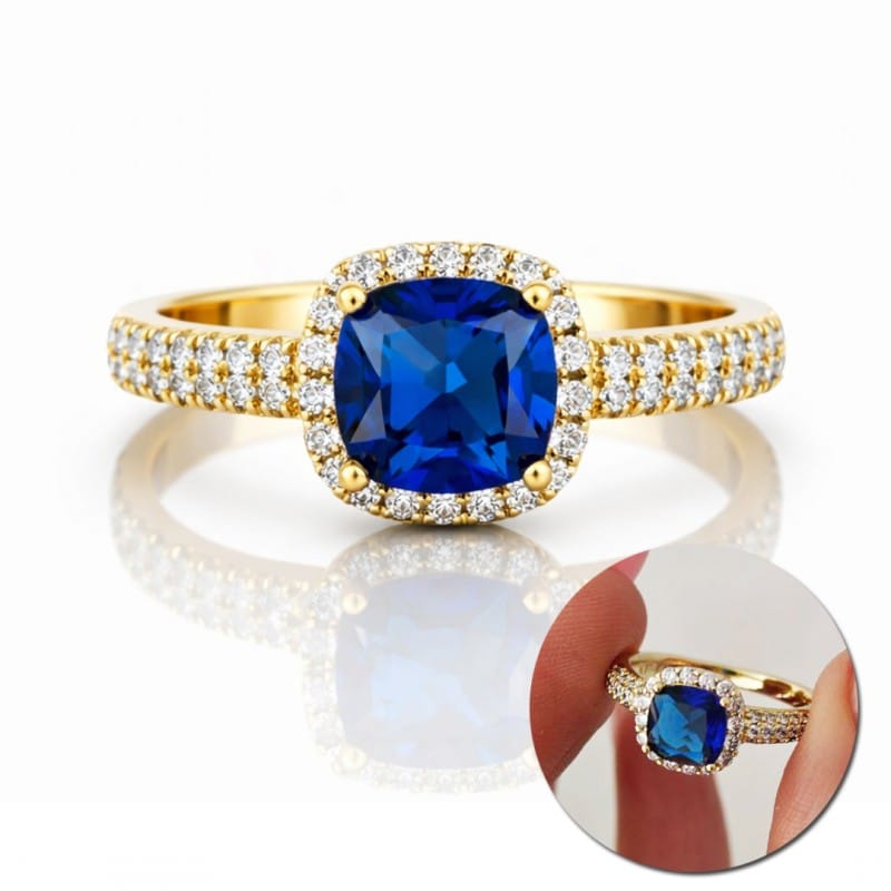 Pierścionek stal chirurgiczna platerowana 14k złotem, efektowy z niebieską cyrkonią PST993, Rozmiar pierścionków: US6 EU11