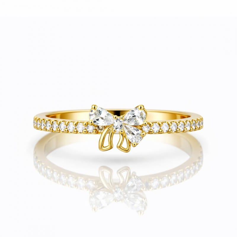 Pierścionek stal chirurgiczna platerowana 14k złotem, KOKARDA cyrkonie PST994, Rozmiar pierścionków: US6 EU11