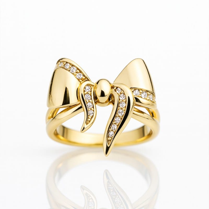 Pierścionek stal chirurgiczna platerowana 14k złotem, Kokardka PST984, Rozmiar pierścionków: US8 EU17