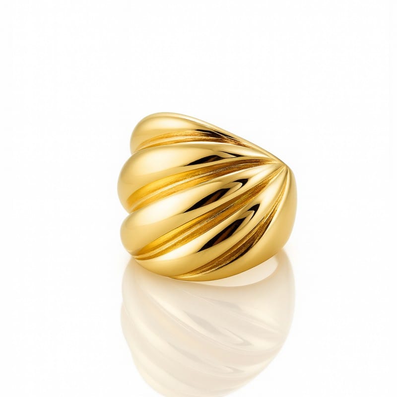 Nowa kolekcja biżuterii ze stali szlachetnejPierścionek platerowany 14-karatowym złotem Wymiary opakowania:12cm x 6,5cmKolor: jasny odcień złotaProducent: inny STAL NIERDZEWNA jest odporna na warunki atmosferyczne, nie ulega korozji, nie rdzewieje, nie śniedzieje.