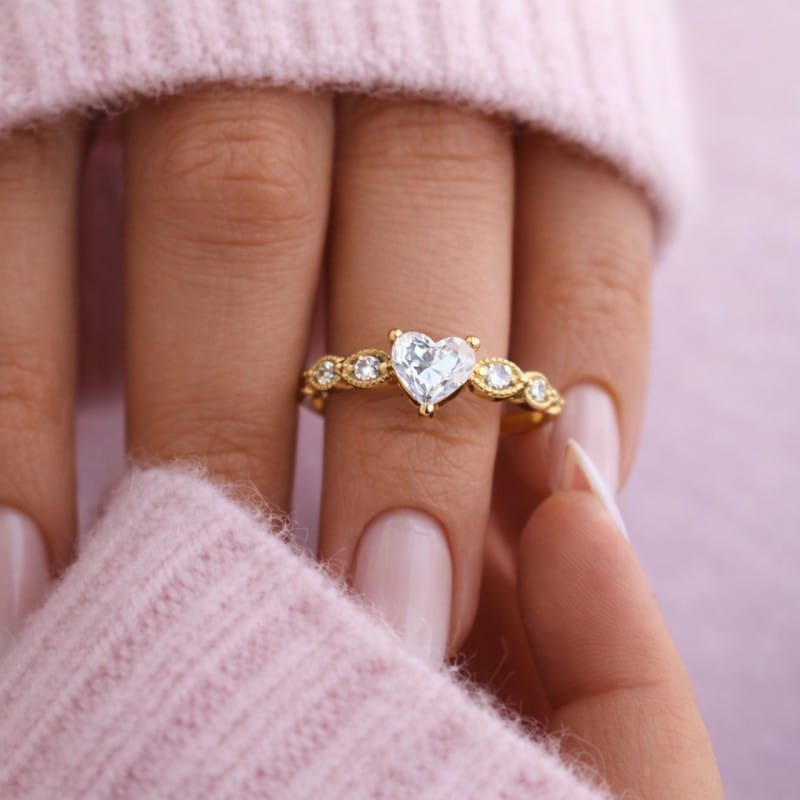Pierścionek stal chirurgiczna platerowana złotem, cyrkonia serce PST892, Rozmiar pierścionków: US9 EU20