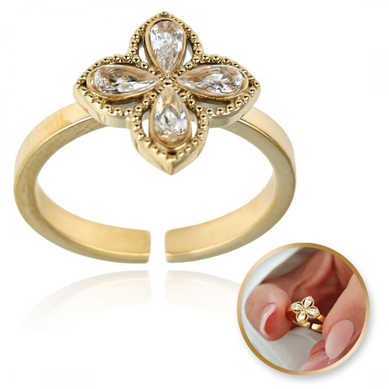 Pierścionek stal chirurgiczna platerowana złotem regulowany cyrkonie PST949