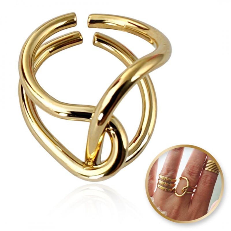 Nowa kolekcja biżuterii ze stali szlachetnejPierścionek platerowany 14-karatowym złotem Rozmiar: uniwersalny, regulowanySzerokość: 2cm Szerokość od góry: 2,3cm Waga: 6g netto / 9g bruttoWymiary opakowania:9cm x 5cm Kolor: jasny odcień złotaProducent: inny STAL NIERDZEWNA jest odporna na warunki atmosferyczne, nie ulega korozji, nie rdzewieje, nie śniedzieje.