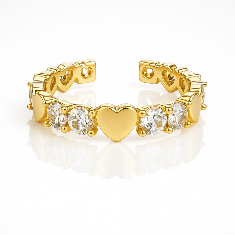 Pierścionek stal chirurgiczna platerowana złotem regulowany, z cyrkoniami PST970, Rozmiar pierścionków: US6 EU11