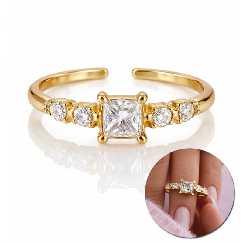 Pierścionek stal szlachetna platerowana 14k złotem z cyrkoniami PST919