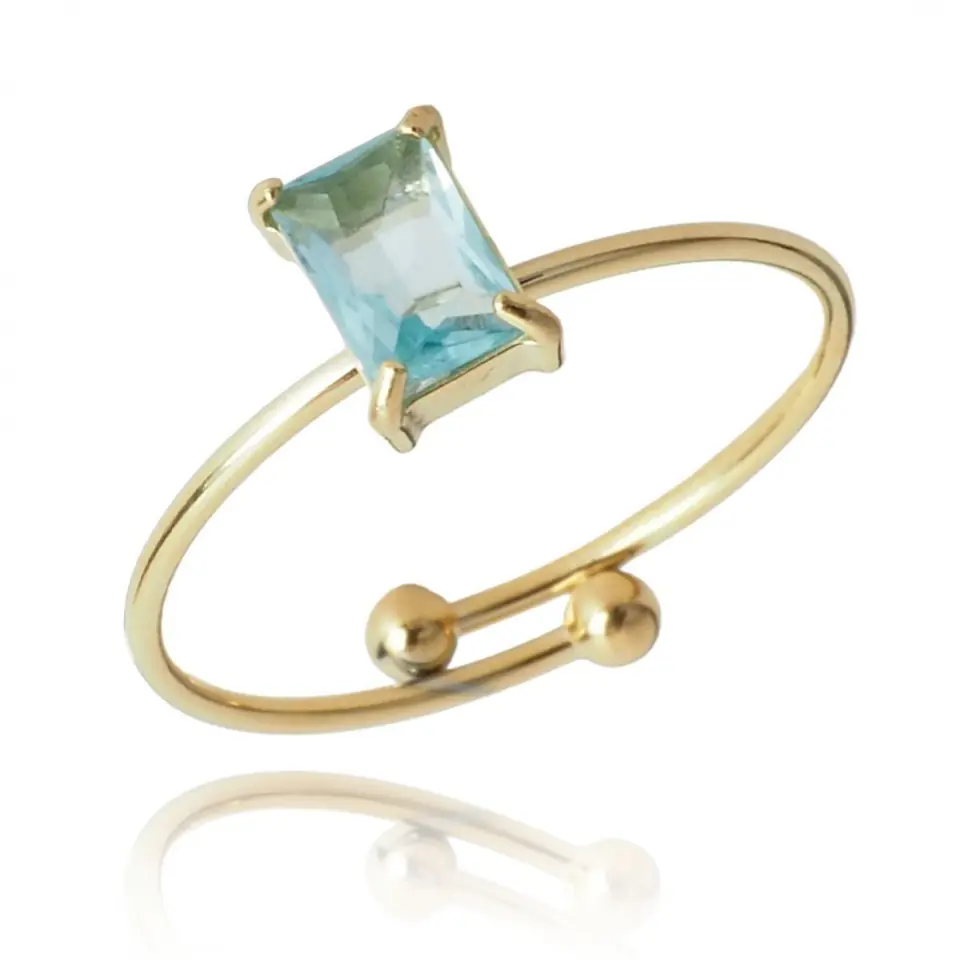 Pierścionek stal szlachetna platerowana 14k złotem z niebieską cyrkonią PST918