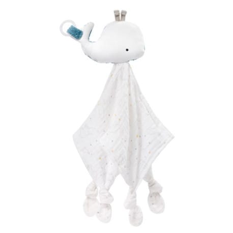 Pierwsza przytulanka, kocyk z uchwytem do smoczka, wieloryb, z