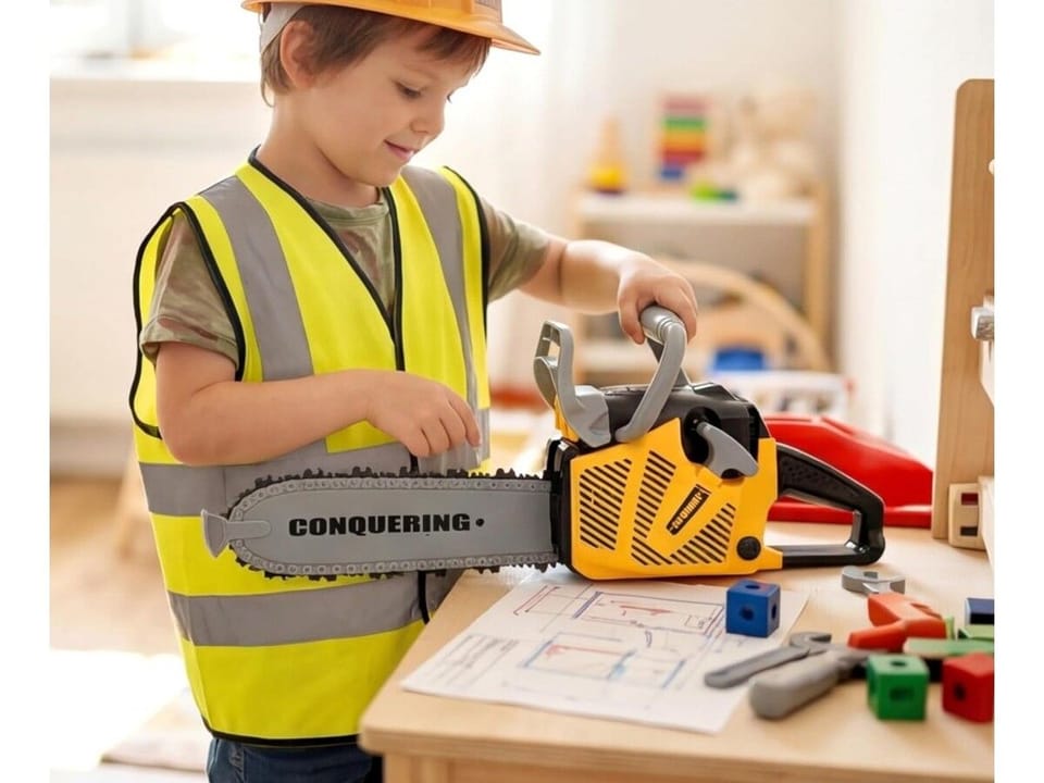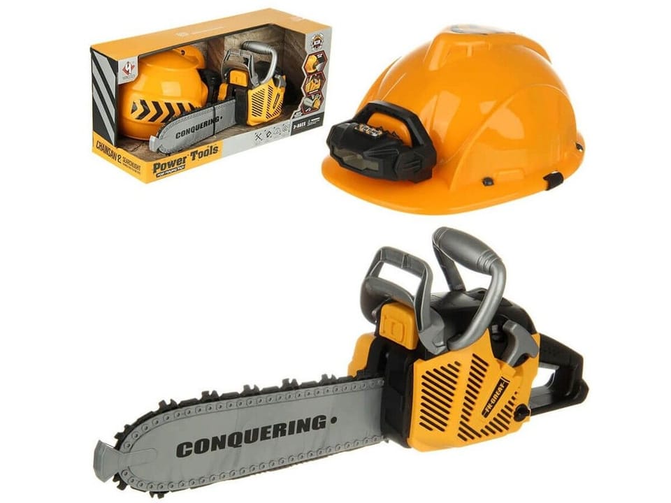 Piła Łańcuchowa Motorowa Zestaw Dla Małego Drwala Kask z oświetleniem