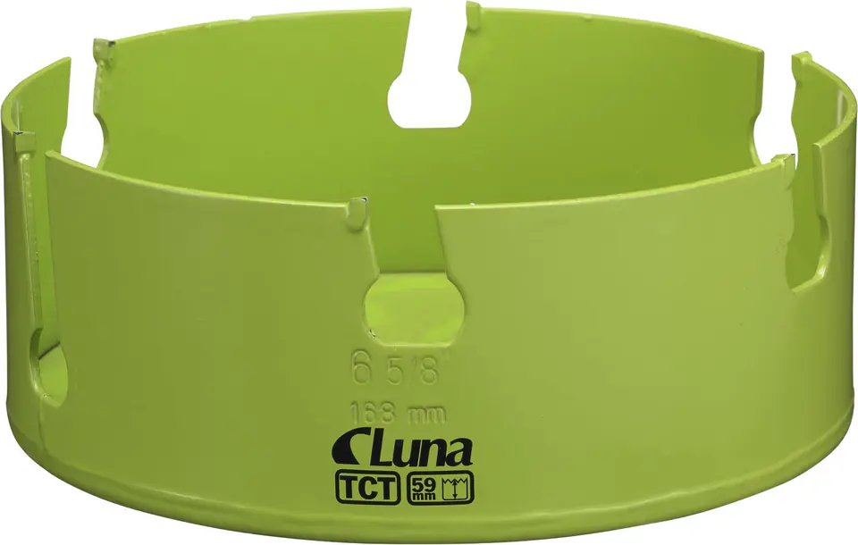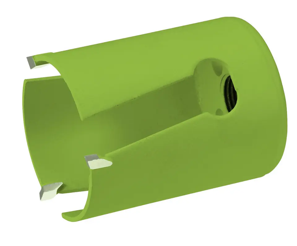 Piła otworowa uniwersalna z uzębieniem z węglików spiekanych do drewna, płyt wiórowych, MDF, gipsowych, tworzyw sztucznych, glazury itp. Otwór wycinany jest szybko, z wydzielaniem małej ilości ciepła. Długa żywotność. Głębokość wycinania do 59 mm. Przy wycinaniu otworów w płytkach ceramicznych należy używać wiertła z węglików spiekanych. Używa się z oddzielną oprawką. Przy otworach o średnicy powyżej 114 mm zaleca się stosować oprawkę z funkcją blokady.