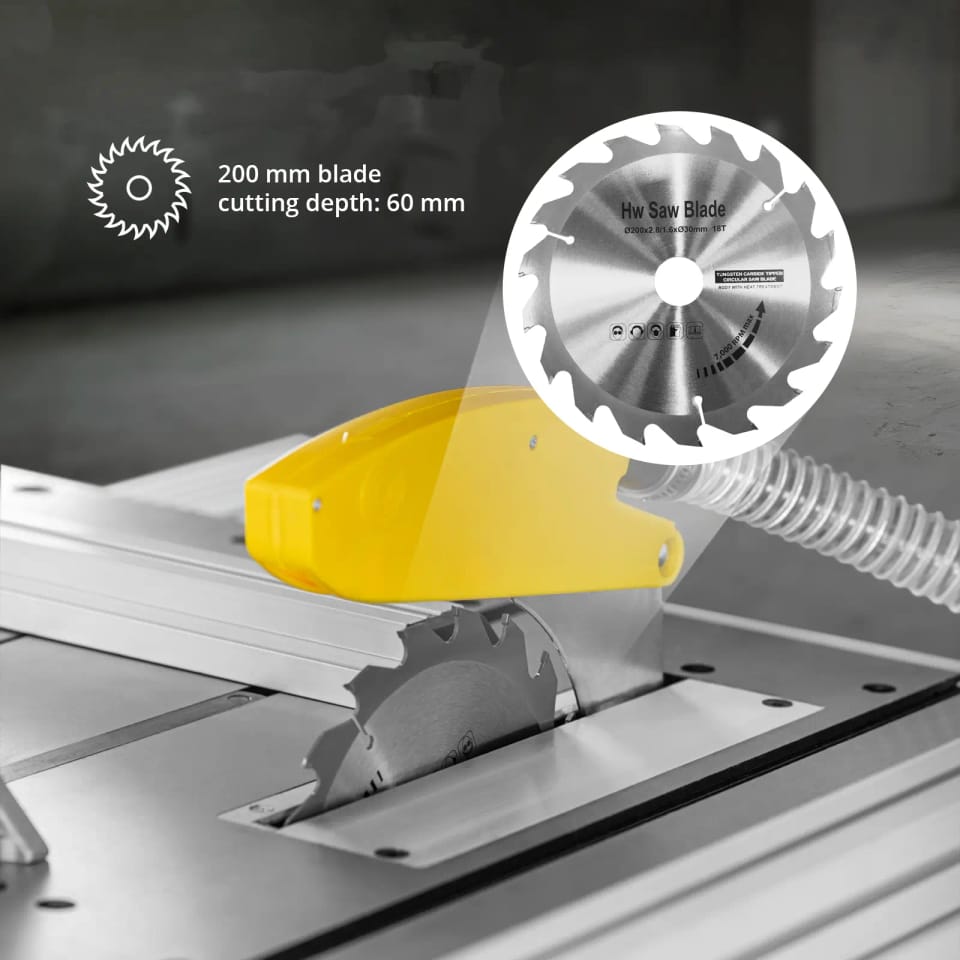 Kod producenta: 10062903Piła stołowa marki MSW-TSA-2400A umożliwia obróbkę nawet dużych elementów. Wydajny silnik o mocy 1,1 kW (400 V) napędza tarczę pilarską 200 mm z prędkością 4750 obr./min oraz gwarantuje czyste i szybkie cięcie do głębokości 60 mm. Dzięki zwiększonej szerokości cięcia do 720 mm można obrobić również płyty i lite drewno z maksymalną precyzją. Żeliwna konstrukcja o niskim poziomie przenoszenia drgań i dokładnie wypoziomowana powierzchnia stołu minimalizują niepożądane wibracje. W połączeniu ze stabilnym biciem wału (tylko 0,05 mm współosiowości) zapewnia to maksymalne bezpieczeństwo i niezmiennie precyzyjne wyniki cięcia (maks. 0,3 mm odchylenia na długości 1000 mm). Ogranicznik na wysokiej jakości prowadnicy oraz regulowana wysokość i kąt nachylenia (45 - 90deg;) pozwolą dopasować pilarkę tarczową do obrabianego materiału. Ergonomicznie zaprojektowana piła stołowa o wysokości roboczej 870 mm sprawia, że nawet przy długotrwałej pracy w warsztacie lub na placu budowy użytkowanie nadal jest komfortowe. Stabilny wózek przesuwny zwiększa dokładność cięcia wzdłużnego i poprzecznego. Zintegrowane przyłącze odsysania pyłu o średnicy 100 mm i wąż o długości 3 m pomaga utrzymać czyste i wolne od pyłu środowisko pracy. Zakres dostawy obejmuje również tarczę pilarską, ogranicznik i inne akcesoria, dzięki czemu pilarka jest gotowa do natychmiastowego użycia.Cechy produktu: