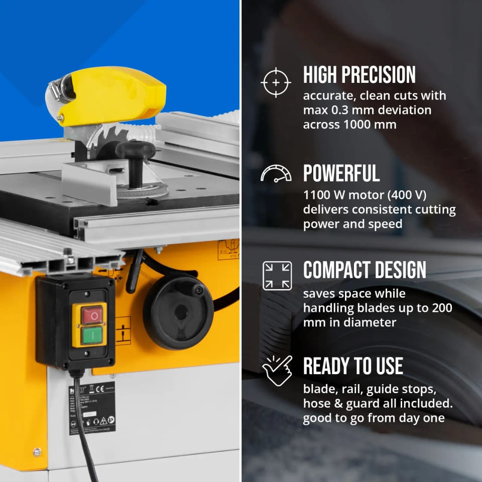 - - Płaska powierzchnia robocza pilarki tarczowej zapewnia precyzyjne i profesjonalne rezultaty cięcia (maks. 0,3 mm odchylenia na 1000 mm),