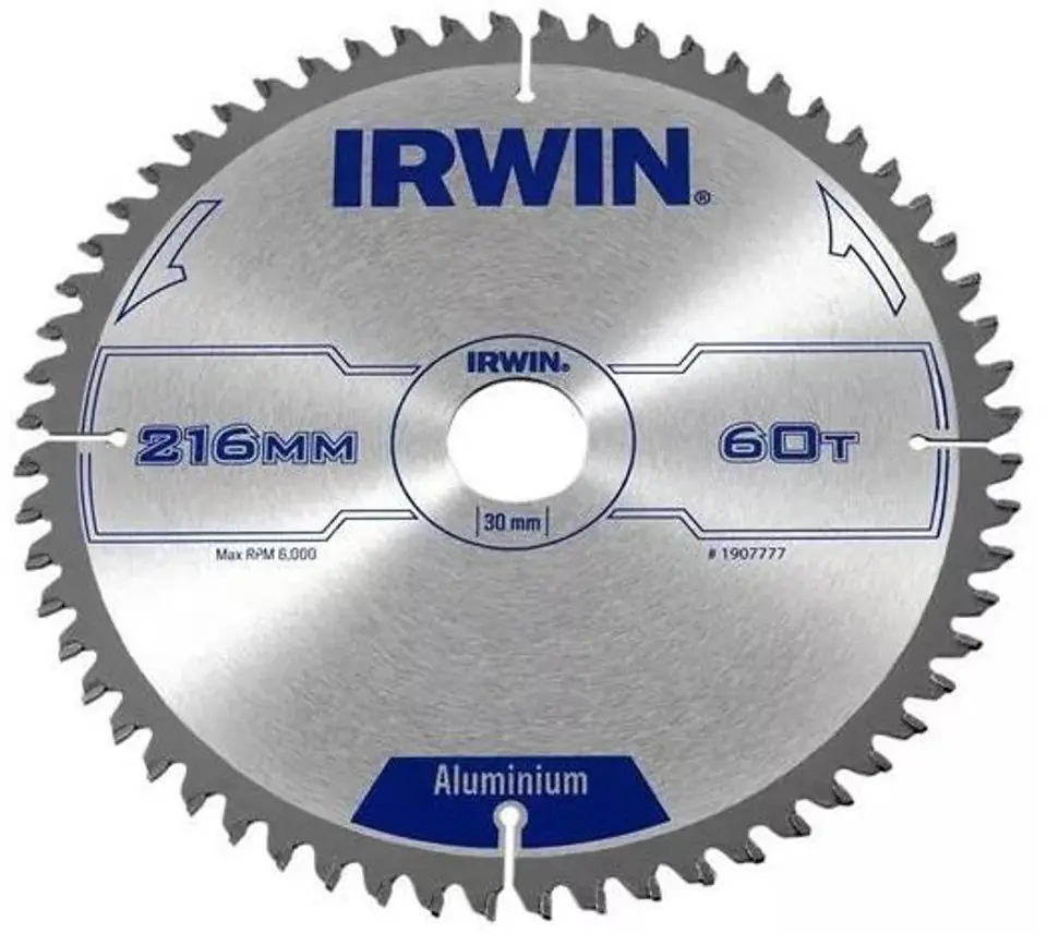 PIŁA TARCZOWA 216x30x2,5mm 60z TCG ALUMINIUM IRWIN Piły tarczowe widiowe TCG ALUMINIUM IRWIN to seria zaprojektowana do cięcia metali nieżelaznych w tym aluminium. Coraz częściej w różnego rodzaju pracach wymagane jest cięcie profili aluminiowych wykonane z dużą precyzją a krawędź cięcia ma być bez zadziorów i termicznyh przebarwień. Piły TCG ALUMINIUM spełniają te warunki. Specjalna konfiguracja zębów tnących w kształcie i ustawieniu TCG zapobiegają strzępieniu materiału i zapewniają znakomite wykończenie cięcia. Szczeliny kompensacyjne rozpraszają naprężenia tarczy zapobiegajac odkształceniom. Tarcze można stosować do cięć prostych i ukosowych aluminium, miedzi, ołowiu i tworzyw sztucznych. Waga: 0,55 kg