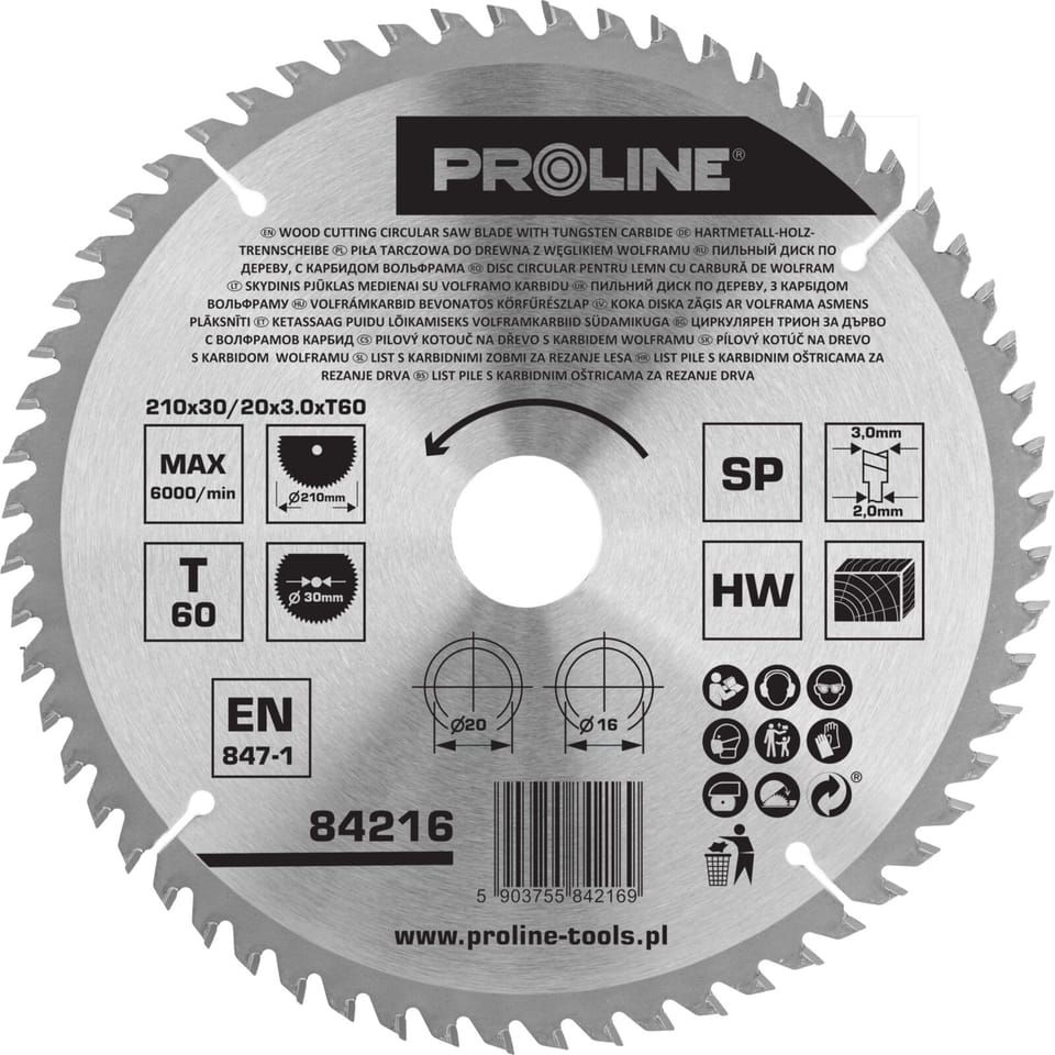Piła tarczowa do drewna 210*60t*30/20/16mm proline