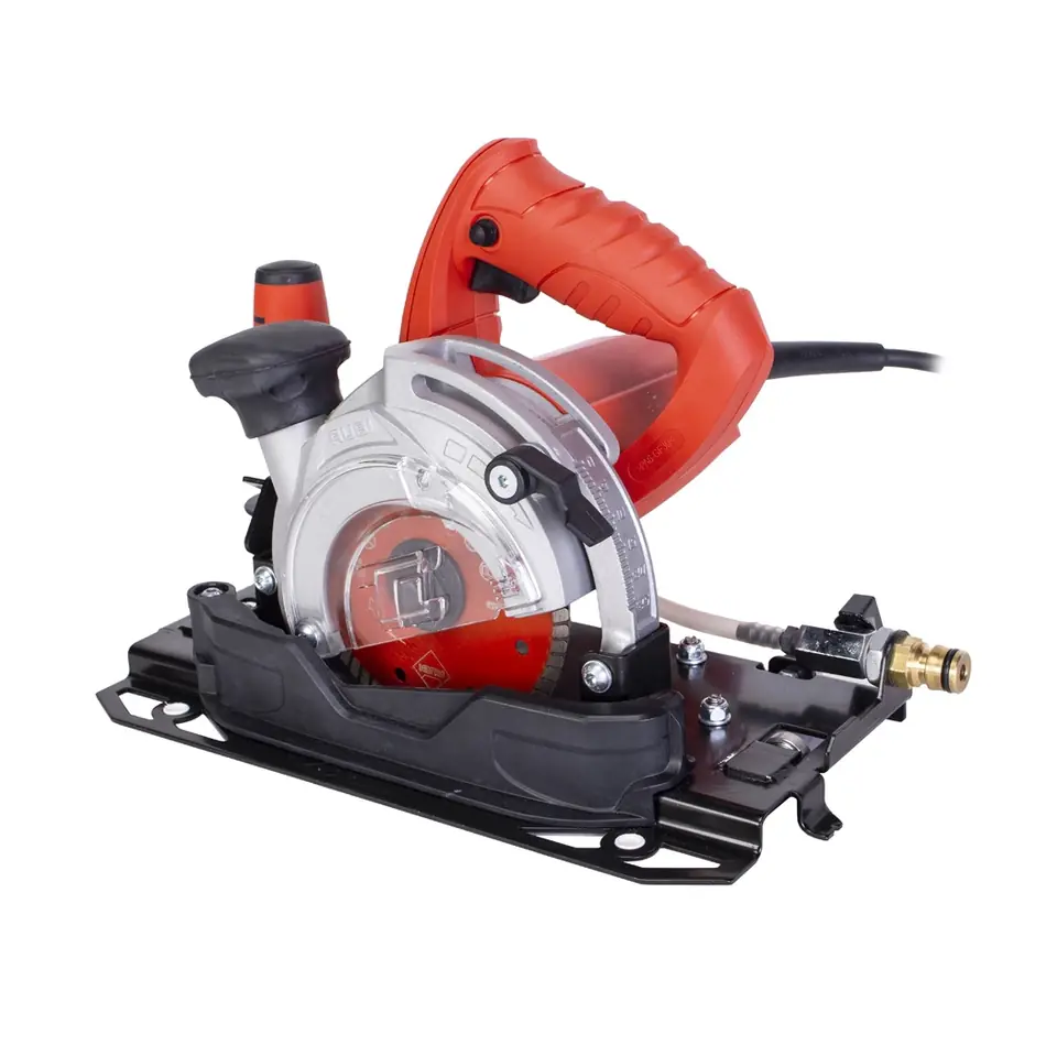 Zawór z regulacją oraz szybkozłączka do węża ** (O16 mm). Gumowa osłona wyjścia pod odkurzacz. Lepsza ergonomia podczas cięcia na mokro.