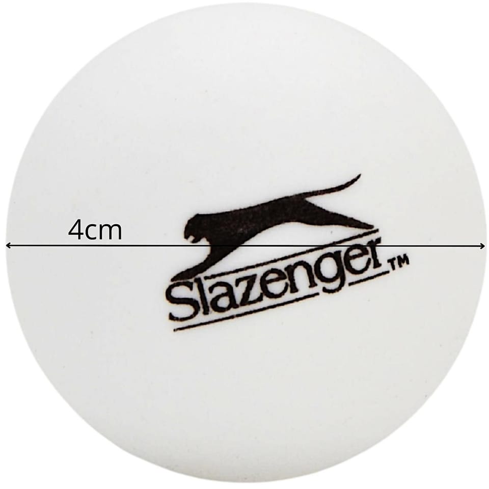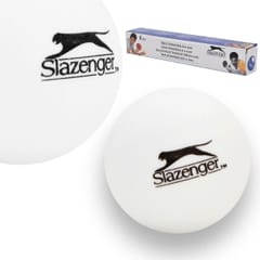 Parametry:- Wymiary: średnica 4 cmWymiary opakowania: 24 x 4 x 4 cm (szer. x gł .x wys.)Materiał: tworzywo sztuczneKolor: białyIlość w zestawie: 6 szt.Waga netto: 0,020 kgWaga brutto: 0,028 kgMarka: SLAZENGERPiłeczki mają nadrukowane logo