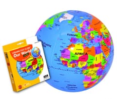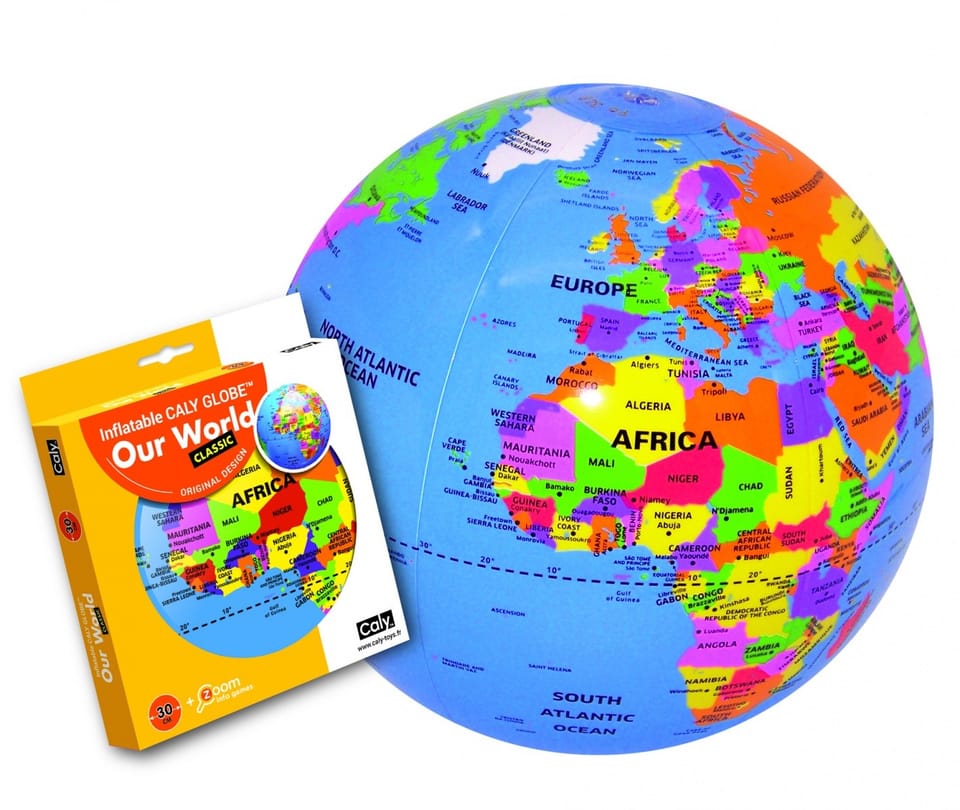 Piłka Globus 30 cm - Nasz ŚwiatDzieci poznają kraje, granice i kontynenty. To odkrywanie pozwala im lepiej zrozumieć świat, jego rozmiar i podziały polityczne. Podczas zabawy z rówieśnikami czy z rodzicami mogą podróżować po całym świecie zadając różne pytania. Globus zawiera nazwy państw i stolic. Piłka globus jest do samodzielnego nadmuchania, opakowanie nie zawiera pompki.