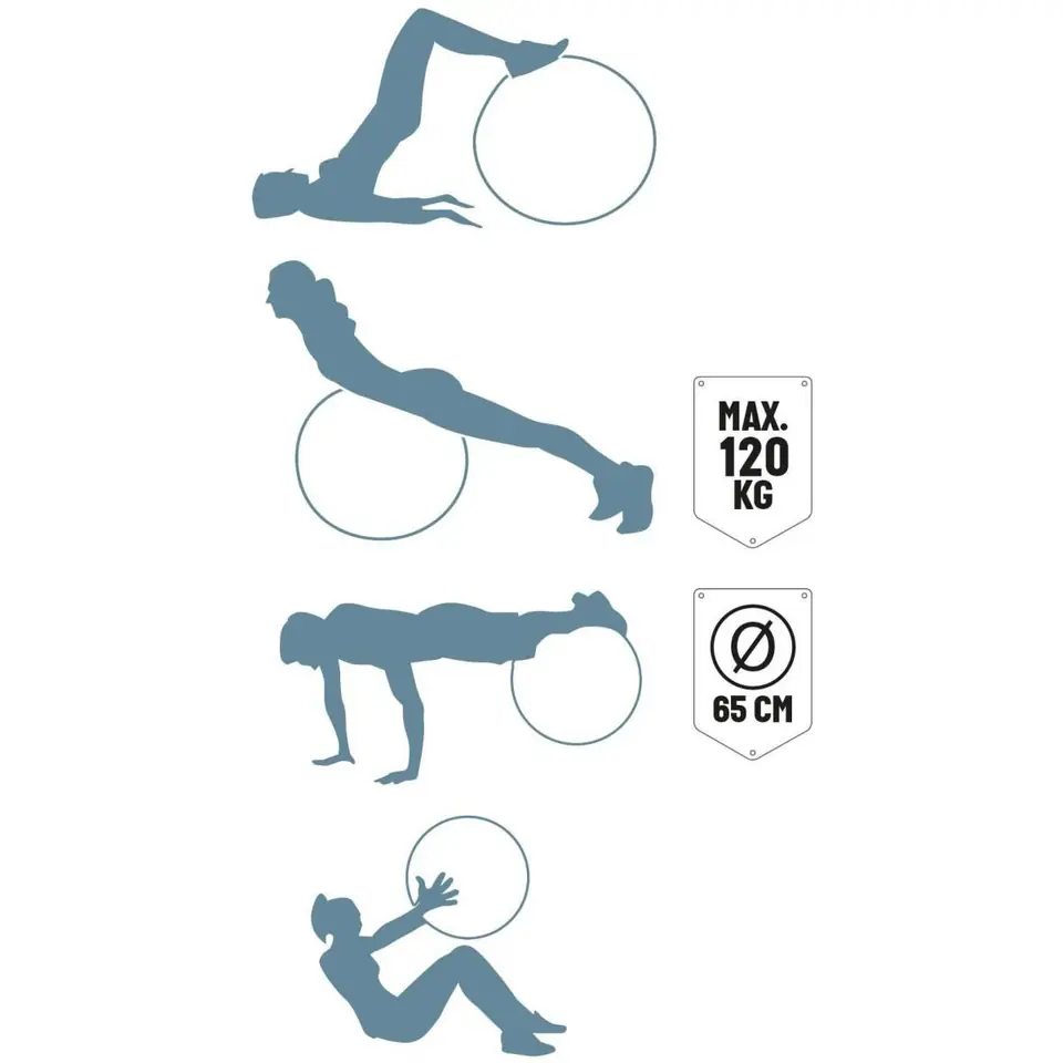 - średnica piłki 55-65 cm odpowiednia dla osób o wzroście 150-165 cmśrednica piłki 65-75 cm odpowiednia dla osób o wzroście 165-175 cmśrednica piłki 75-85 cm odpowiednia dla osób o wzroście 175-185 cmśrednica piłki 85 cm odpowiednia dla osób o wzroście powyżej 180 cm