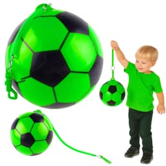 PIŁKA GUMOWA ZIELONA 22 CM – WZÓR PIŁKI NOŻNEJ Z UCHWYTEM NA SPRĘŻYNĘ