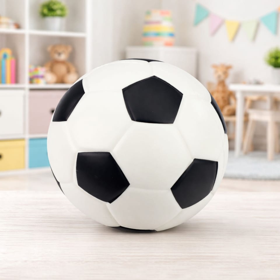 Wykonana z lekkiej pianki piłka dobrze dopasowuje się do dziecięcych dłoni oraz stóp, co ułatwia kontrolę nad ruchem i zwiększa komfort zabawy. Miękki materiał amortyzuje uderzenia, zmniejszając ryzyko przypadkowych stłuczeń czy uszkodzenia mebli. Klasyczny wzór piłki nożnej przyciąga uwagę i zachęca do aktywności ruchowej, a odpowiednia wielkość sprawia, że dziecko może swobodnie ćwiczyć pierwsze podania, rzuty i kopnięcia. Zabawa wspiera rozwój koordynacji ruchowej, refleksu, równowagi oraz ogólnej sprawności fizycznej dziecka, jednocześnie dostarczając dużo radości i energii.