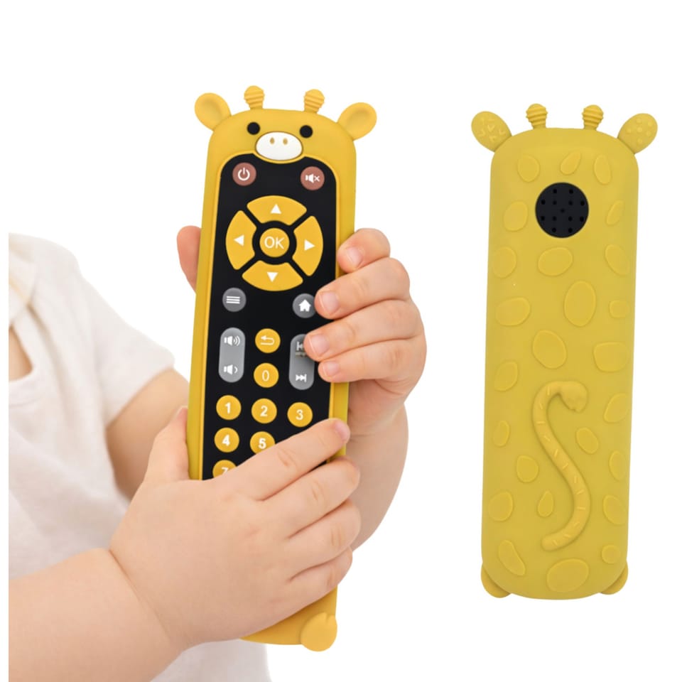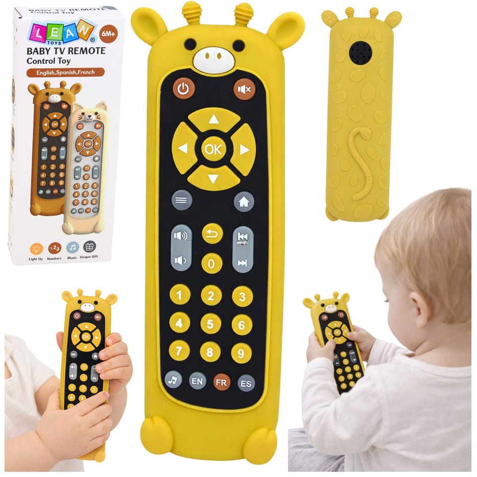 Interaktywny pilot dla niemowląt w kształcie żyrafy to edukacyjna zabawka sensoryczna zaprojektowana z myślą o najmłodszych dzieciach już od 6 miesiąca życia. Zabawka swoim wyglądem przypomina prawdziwy pilot do telewizora, a jednocześnie posiada przyjazny kształt żyrafy, który wzbudza zainteresowanie dziecka i zachęca do chwytania oraz aktywnej zabawy. Pilot wyposażony jest w liczne przyciski, które po naciśnięciu uruchamiają dźwięki, melodie, efekty świetlne oraz wypowiadane słowa i liczby, wspierając rozwój słuchu, wzroku oraz koordynacji ręka oko.