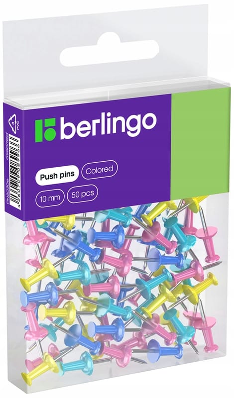 Wprowadź porządek do swojego biura lub miejsca pracy dzięki pinezkom tablicowym Berlingo. W opakowaniu znajduje się 50 sztuk pinezek w atrakcyjnych, pastelowych kolorach, które dodadzą odrobiny świeżości każdemu projektowi.Główne cechy produktu: