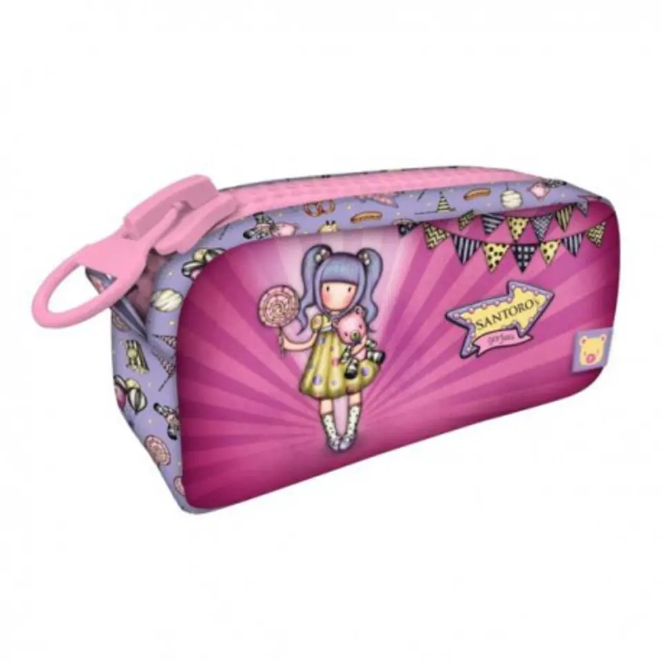 Piórnik z Dużym Suwakiem - Gorjuss - First Prize Fantastyczna seria First Prize ozdobiona jest grafiką dziewczynki Gorjuss ze słodkim misiem, na tle w kolorze liliowym, wzbogacona akcesoriami z lunaparku: balonami, popcornem, lizakami, cukrową watą. Piękny piórnik zapinany na suwak z dużą zawieszką. Może pełnić funkcję kosmetyczki lub saszetki. Zmieszczą się w nim zarówno ołówki i długopisy, a także przybory do szycia, kosmetyki lub inne drobiazgi. Wykonany ze szczególną dbałością. Wzbogacony pięknym, gumowym logiem Santoro w kształcie strzałki. Wymiary: 21,5 cm x 7 cm 10,5 cm. Zabawna kolekcja Fairground pełna plecaków, akcesoriów i artykułów papierniczych, która nawiązuje do tajemniczych przygód przeżytych w Wesołym Miasteczku pełna fajerwerków, karuzel, beczek śmiechu, huśtawek i zdobywanych nagród. Zabawne pompony, wzory pełne smakołyków czy metalowe zawieszki przeniosą nas do barwnego świata Santoro, pełnego niespodzianek jakie nas czekają w lunaparku. To kolekcja, którą będziemy cenić przez wiele lat. Podążaj za dziewczynami, bohaterkami 4 serii: Up & Away, Fireworks, Carusel i First Prize i odkrywaj ekscytującą kolekcję pełną cudownych smakołyków! 1127GJ02