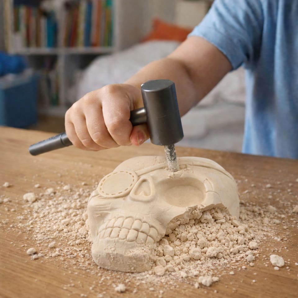 Dziecko wciela się w rolę poszukiwacza skarbów i krok po kroku odsłania tajemniczy piracki artefakt, taki jak kotwica, ster, skrzynia skarbów, miecz czy czaszka. Proces wykopalisk daje ogromną satysfakcję z samodzielnego odkrycia znaleziska i pobudza wyobraźnię.