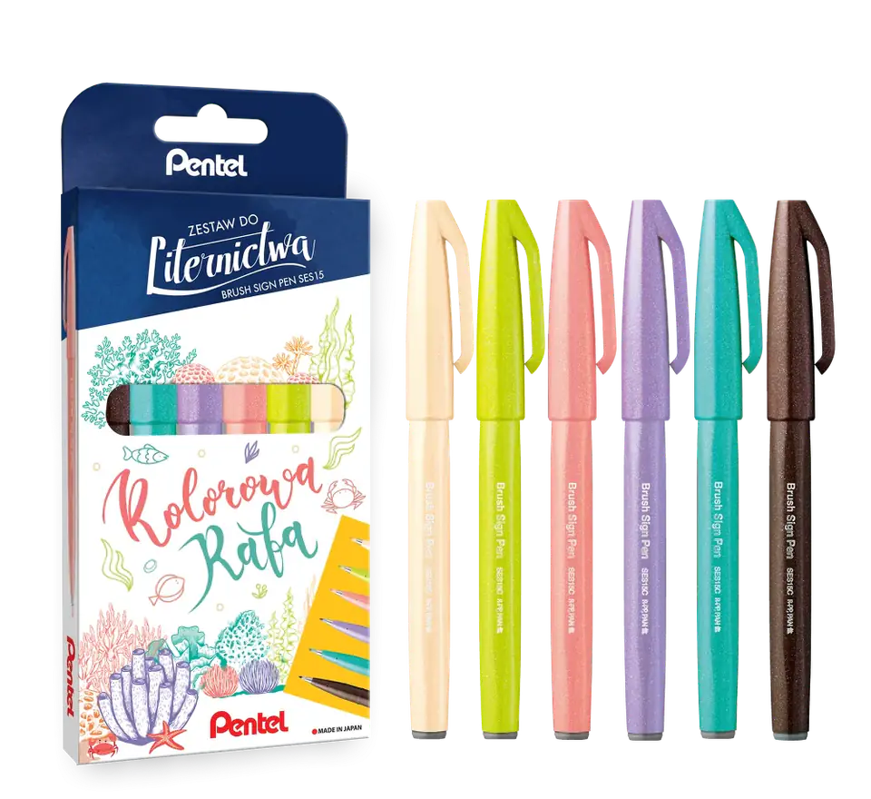 Zestaw 6 pisaków pędzelkowych SES15C do kaligrafii i liternictwa jest dedykowany dla pasjonatów sztuki pięknego pisania oraz kolorowych notatek. Postaw na japońską jakość pisaków do kaligrafii. Sprawdzą się idealnie u początkujących oraz zaawansowanych użytkowników.
