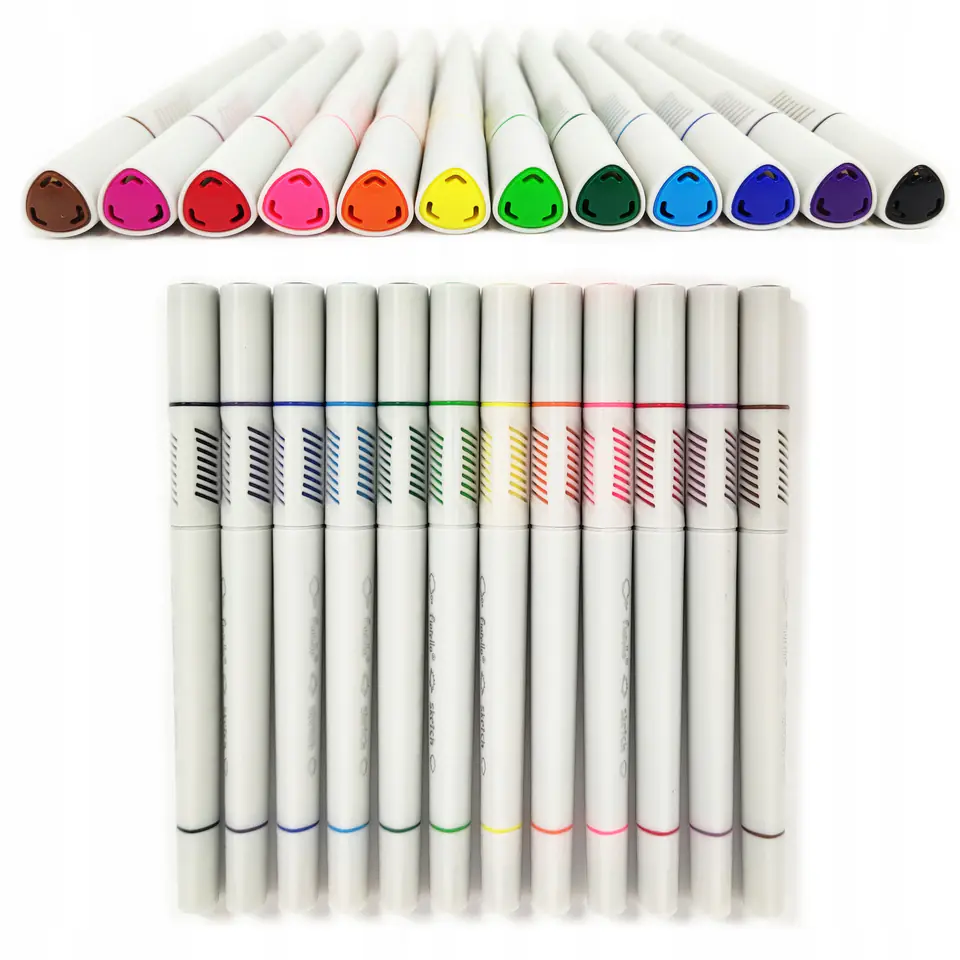 Posiadają podwójną koncówke: pedzelek + cienkopis. Koncówka pedzelkowa pozwala uzyskac ciągle, jednolite linie o róznej grubości. Cienka koncówka przeznaczona do cienkich linii i detali.