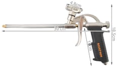 - PLASTIKOWA RĘKOJEŚĆ – specjalnie profilowany uchwyt z tworzywa sztucznego gwarantuje stabilne trzymanie narzędzia w ręce, co ma znaczący wpływ na precyzyjne użycie piany, szczególnie w miejscach trudno dostępnych.