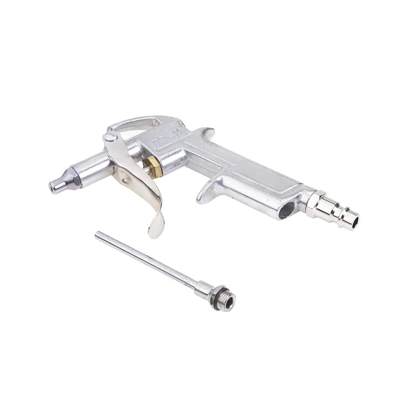 Pistolet do przedmuchiwania wykonany ze stopu cynku, dzięki czemu jest solidny i trwały. Zestaw zawiera krótką końcówkę (20 mm) oraz końcówkę z rurką o długości 80 mm. Maksymalne ciśnienie robocze 10-12 bar. Konstrukcja z chwytem pistoletowym, wygodna i łatwa do trzymania.