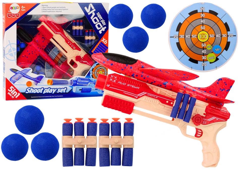 Pistolet Na Strzałki Kulki Piankowe Wyrzutnia Samolotu Tarcza Zestaw 5w1