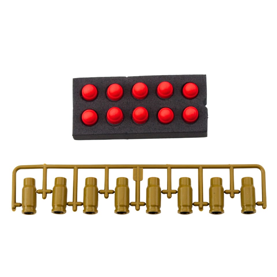 - Mechanizm: ręczne ładowanie łusek i strzał piankową amunicją