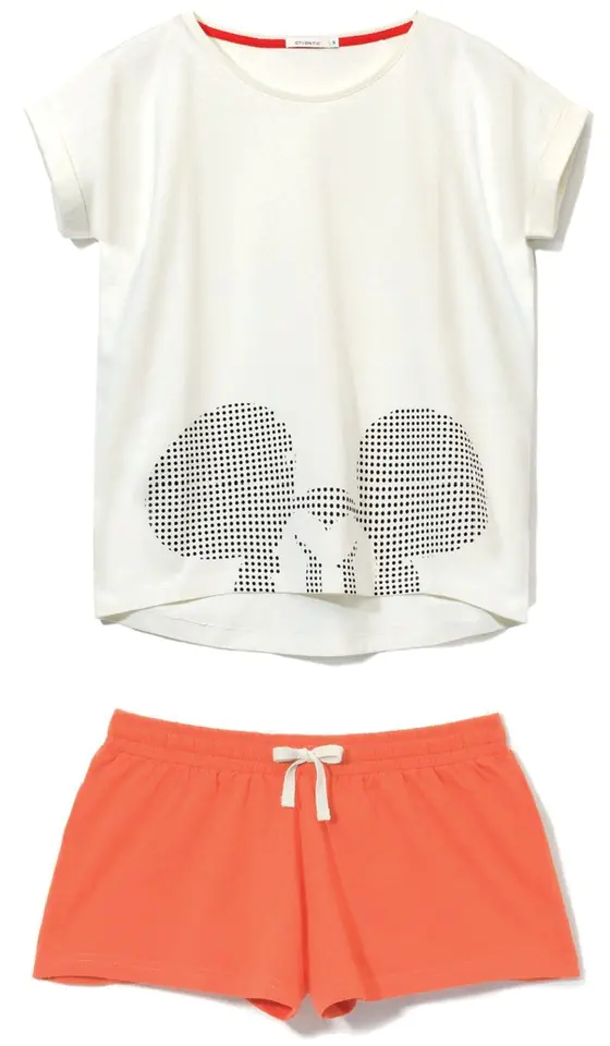Komfortowa piżama damska, składająca się z koszulki z krótkim rękawem, oraz krótkich spodenek.