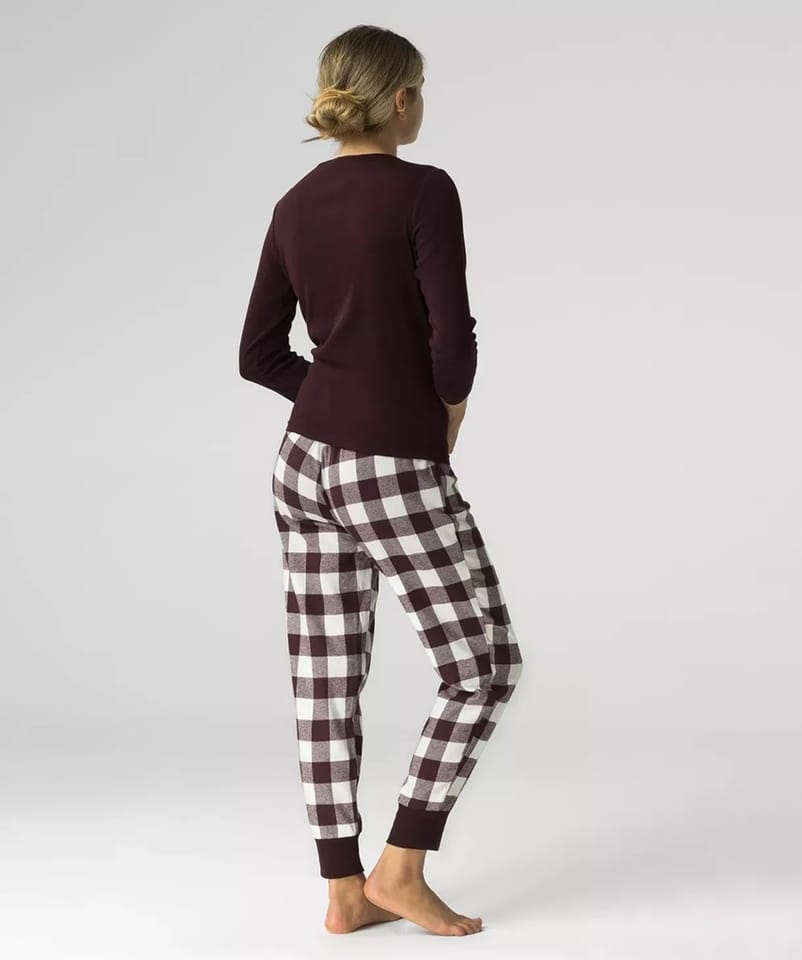 Piżama damska z gładką koszulką i kraciastymi spodniami. Maksymalny poziom wygody. Miękka dzianina i niecisnący ściągacz w talii. Praktyczne kieszenie po bokach. Skład góra: 95% bawełna, 5% elastan, dół: 100% bawełna.