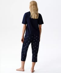 Piżama damska wykonanat z miękkiej i przyjemnej w dotyku bawełnianej dzianiny, która jest przyjazna dla skóry, przepuszcza powietrze i zapewnia komfort termiczny. Materiał jest odporny na codzienne użytkowanie. Skład:100% bawełna.